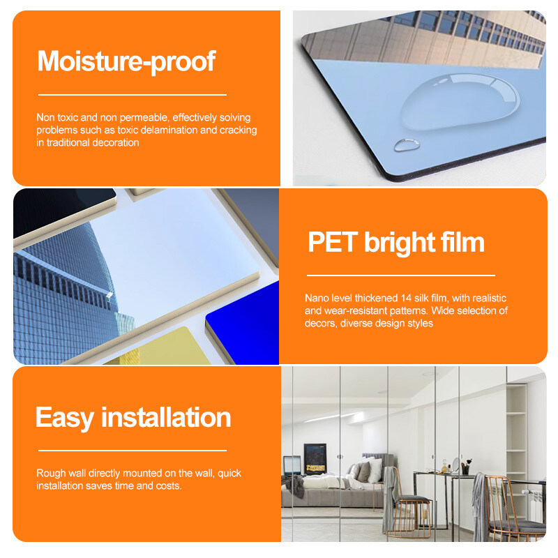 この壁パネルは厚さ5/8mmで、軽量で設置が簡単です。2.44/2.6/2.8/3/3.2/3.4/3.6 Mなどのさまざまな長さで利用可能で、ニーズに合わせてカスタマイズすることもできます。スタイリッシュなデザインと汎用性により、住宅と商業スペースの両方に適しています。