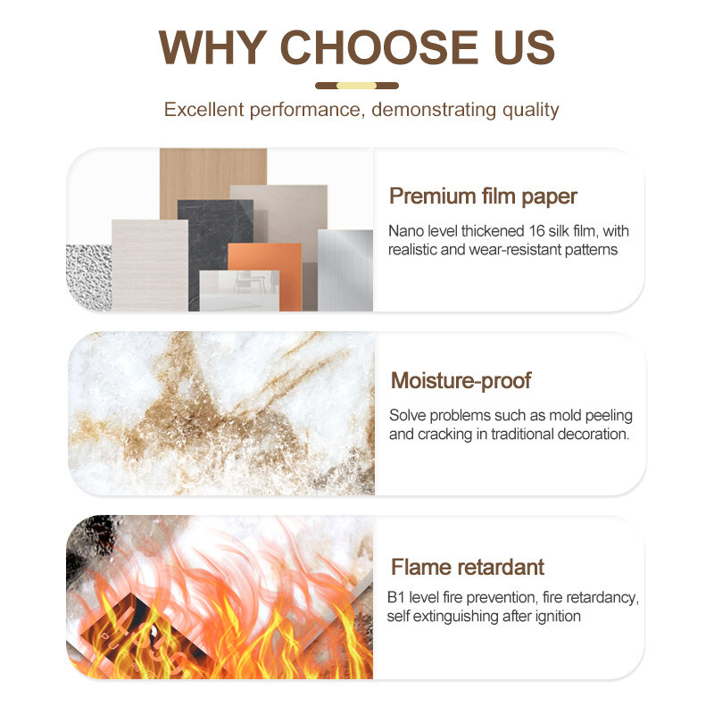 工場価格 木材ファニヤ 1220x2800mm 高光沢 PVC マルマーシート 竹炭板