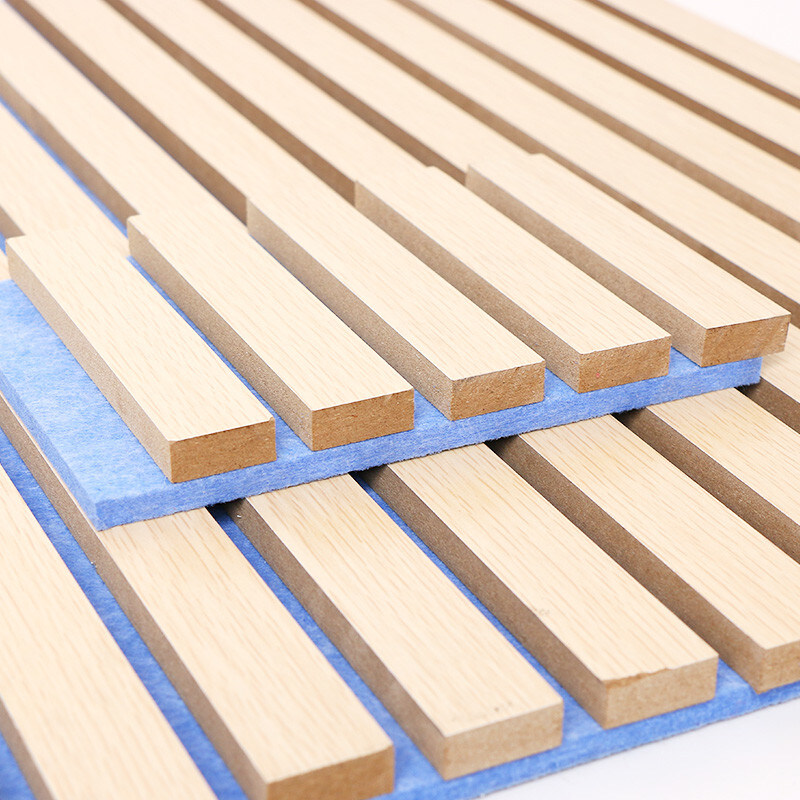 格子状木製スラットアコースティックパネルは、吸音と室内の音響改善という利点を享受しながら、アパートの美観を高めます。アコースティックパネルは、洗練された木製スラットで設計されており、アパートの壁に自然な美しさと暖かさを加えます。詳細なスラットは魅力的な視覚効果を生み出し、生活空間全体の雰囲気を高めます。アコースティックパネルの装飾的なグリルパターンは、アパートに洗練さを加えます。吸音機能と装飾的な魅力の組み合わせは、インテリアを向上させるための人気のソリューションとなっています。スラットデザインは、音の反射と残響を減らし、より静かで平和な環境を実現します。音の反射を減らすことで、アコースティックパネルはアパート全体の音響を向上させます。音の分布をバランスさせ、音楽、会話、その他の音声を邪魔されることなく聞き、楽しむことを容易にします。